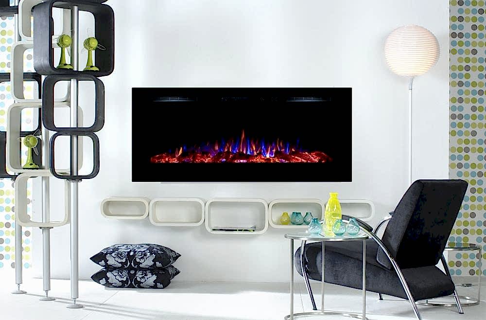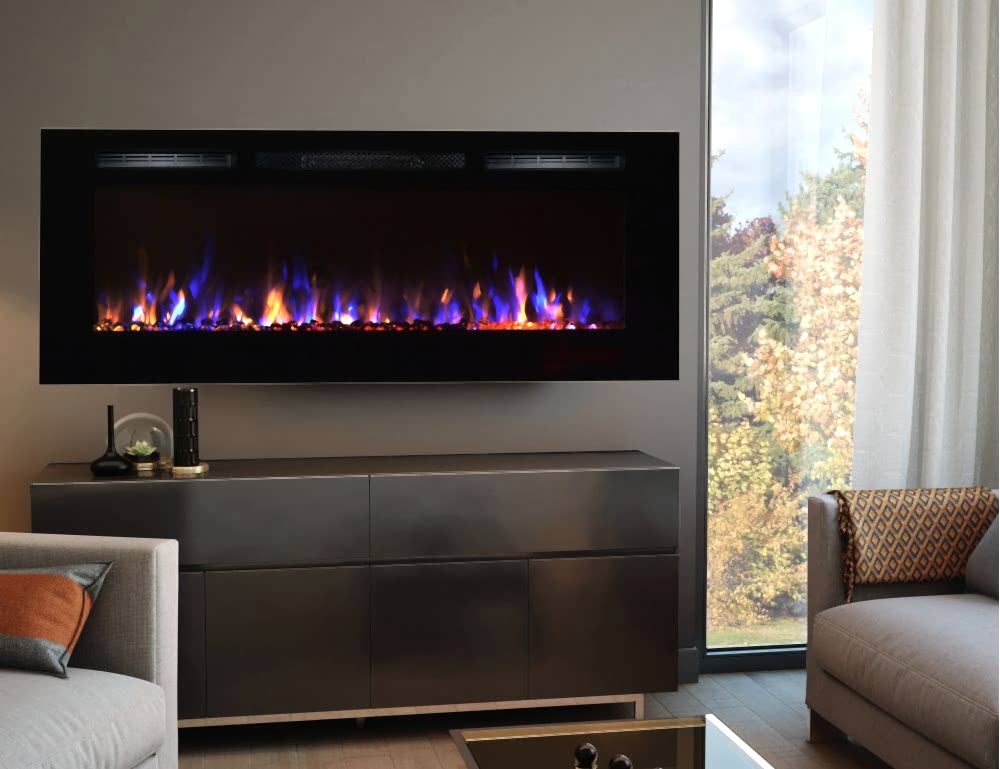 - Asma veya ankastre uygulama için tasarlanmış plazma tipi bir elektrikli şömine modeli,