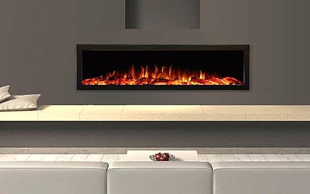 - Asma veya ankastre uygulama için tasarlanmış plazma tipi bir elektrikli şömine modeli,